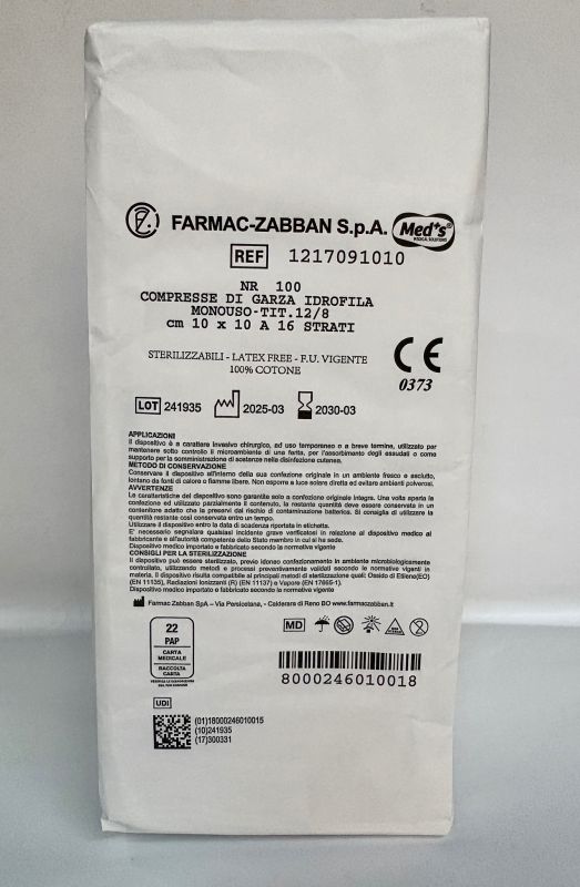 Compresse di Garza Piegata - cm. 10 x 10 ( 16 pieghe ) Conf. 100 pz. - FARMAC ZABBAN