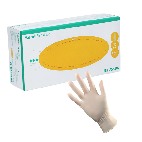 Guanti in Lattice Senza Polvere " VASCO SENSITIVE " ( 1.000 pezzi ) - TAGLIA XS - B BRAUN